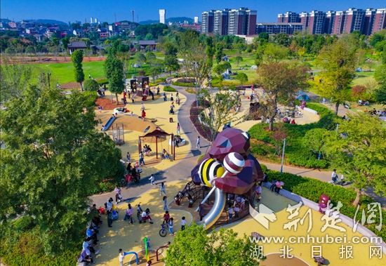 劲牌公司捐资10亿元打造的金湖生态园,更让150多亩灰色尾矿库变身城市“绿肺”——乔木成林、草皮如毯,旧日粉尘飞扬之地,现在成为市民散步、孩提嬉戏的“后花园”。